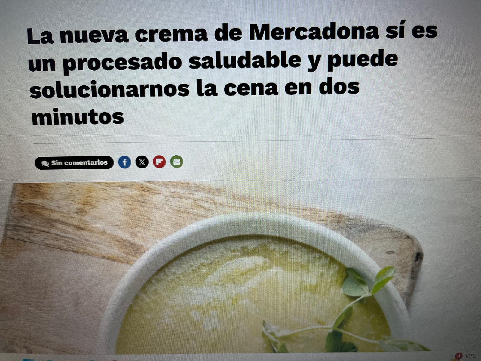 Para no caer en ultraprocesados insanos, ya sea en frío o en caliente, esta sana crema de Calabacín de Mercadona sin Colorantes ni Conservantes tiene un 64% de verduras (con 43% de calabacín, 11% de cebolla y 10% de zanahoria, con un alto porcentaje de fibra vegetal, perfecta para facilitar las buenas digestiones y no tener que recurrir a tomar un kiwi para combatir el extreñimiento), nos puede resolver una cena en dos minutos; y si queremos darle un punto proteínico, acompañarla de media ventresca de atún, bien escurrida; revolverla con un huevo duro o escalfado en caliente o mil ideas fácilmente realizables, facilitando una buena digestión nocturna.