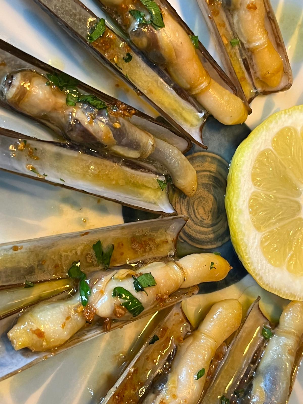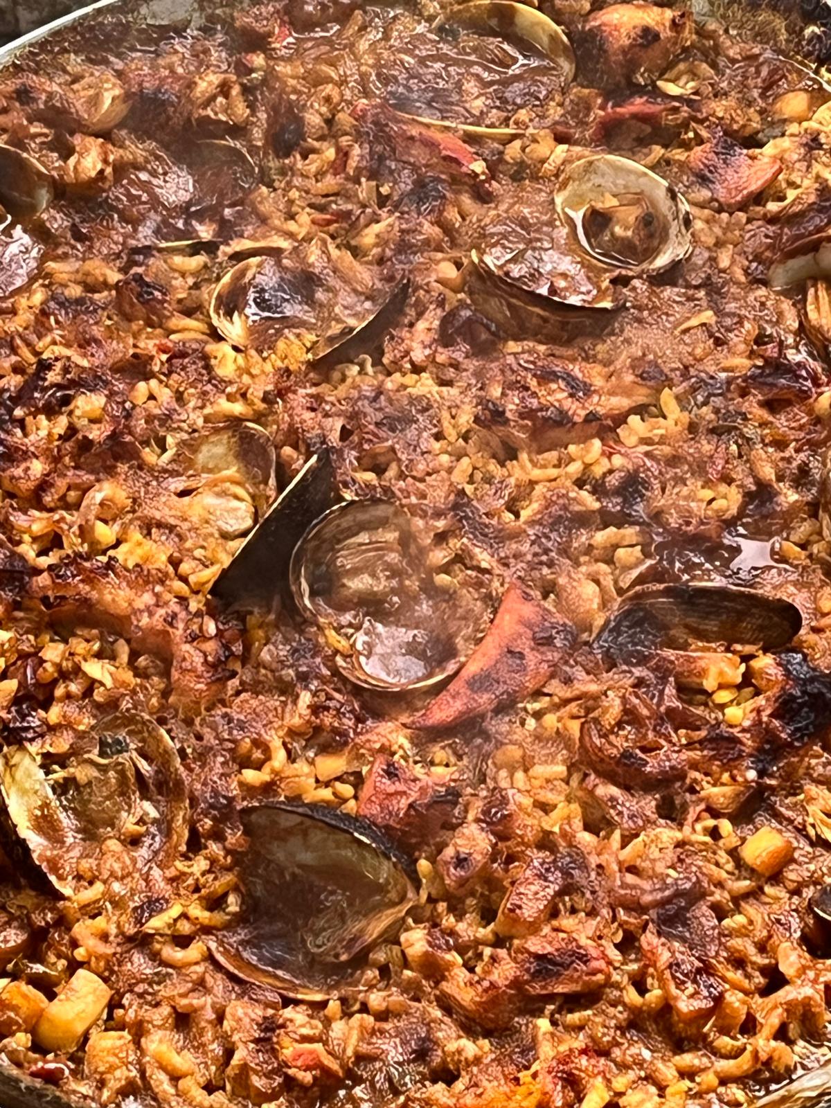Postales finales del cálido y luminoso verano del 2025, observando el Globo que ameriza en el colindante campo Pitch & Putt. Uno de mis menús veraniego favorito, es un aperitivo abundante de jamón de bellota, al 100%, bien cortado a cuchillo, de la primera mitad del gochu, que es la más jugosa y tiene un tocino, mejor que el magro. El plato único, para repetir hasta que el cuerpo lo demande, es arroz con bugre y almejas babosas de las Rías Baixas. Con un postre que es Crenata de La Playa, acompañada del excepcional helado que hacen en El Turronero, Paco Verdu, en la calle Los Moros de Gijón; la bebida refrescante se hace con un CUNE reserva y Casera de limón. El arroz con bugre, previamente encargado, lo prepara divinamente mi amigo Miguel, que es el chef owner del restaurante cercano que sólo abre a mediodia, Los Nogales tel. 985 33 63 34, siguiendo mis consejos culinarios, con un toque final de horno, sencillamente Sublime; que es la recreación del famoso Arroz de Ciego, pero con un caldo y unos componentes, de otra Galaxia.