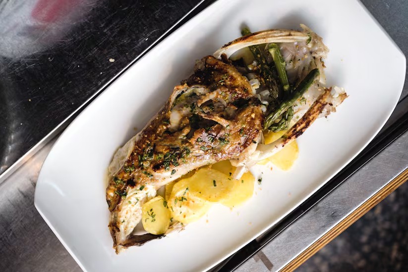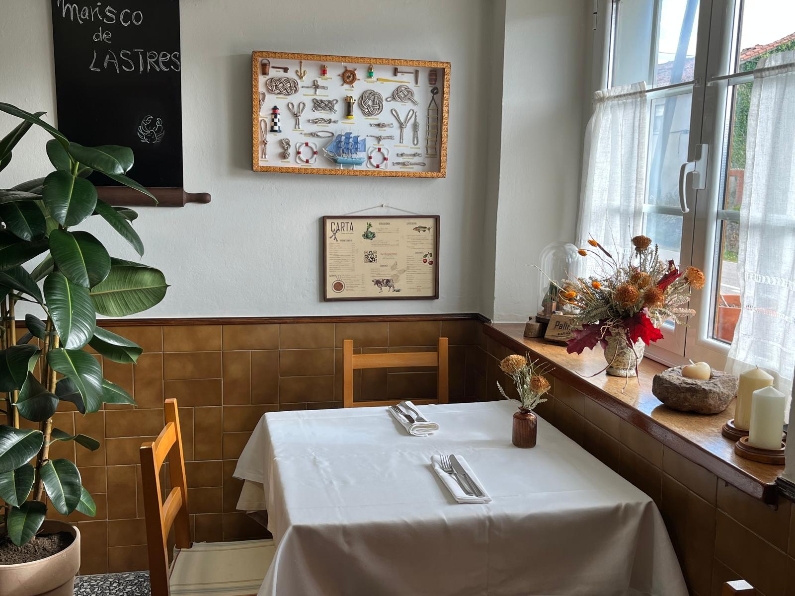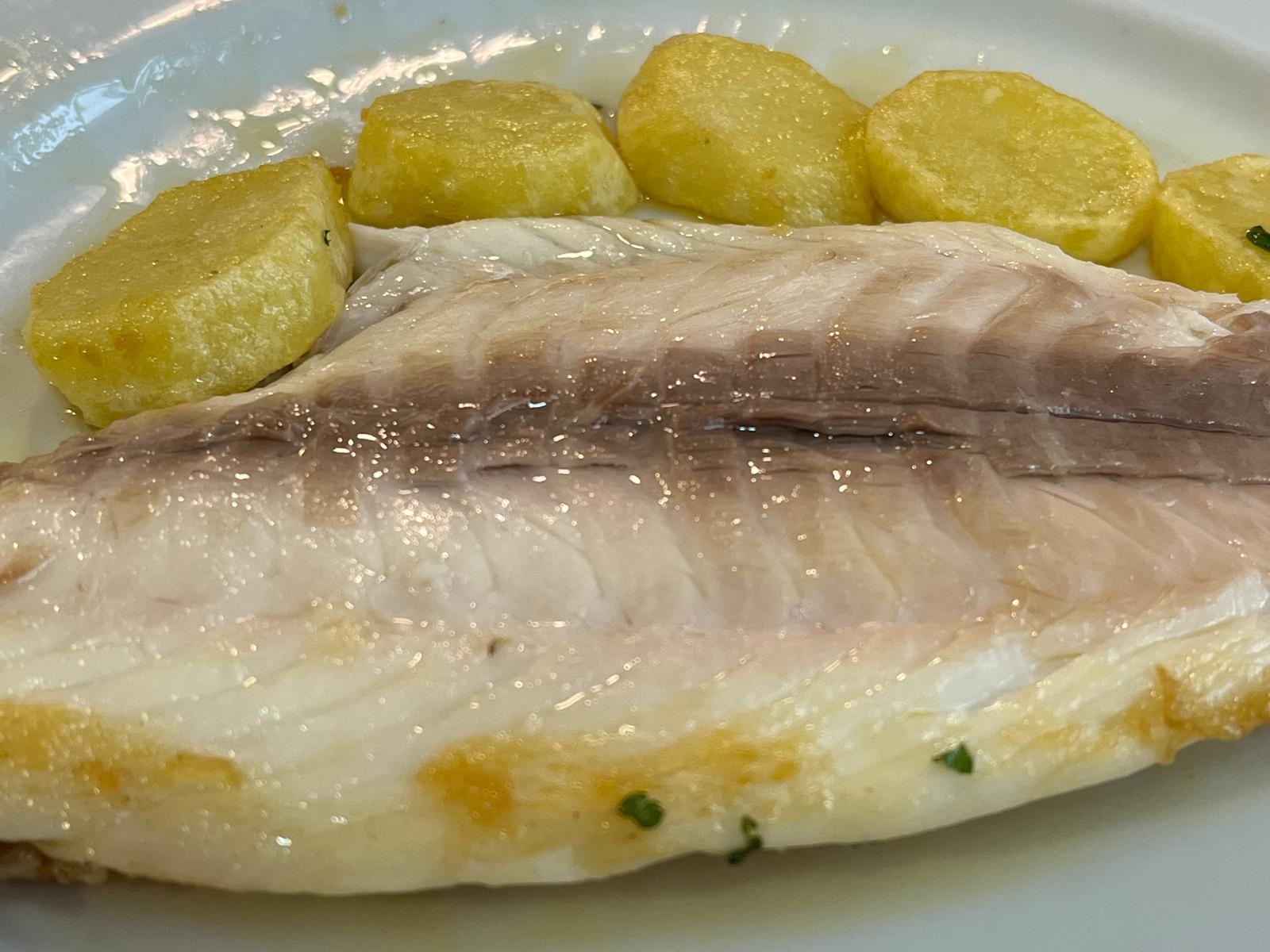 El pescado llega a diario de las lonjas de Lastres y Llanes. Maite se niega a que en su nevera entre nada procedente de las Azores. “Por principios. Estoy acostumbrada a este tipo de pescado, que me traen de aquí al lado. Soy exigente. Todo tiene que ser de casa, porque la clientela, una vez que entra por la puerta, ya es de casa”, afirma con la convicción de quien defiende lo propio. Además de las piezas del día —pueden ser rodaballo, cabracho, lubina, rape, dorada o San Martín—, entre el repertorio marino figuran callos de bacalao con espinacas (29 euros), lomo de bacalao sobre patatas al estilo panadera con pisto (30 euros), merluza de pincho a la espalda (30 euros) o unos delicados fritos de merluza (27 euros). Los amantes de las llámpares (lapas) están de enhorabuena: las prepara a la sidra (19 euros), y las navajas las cocina a la espalda (19 euros).