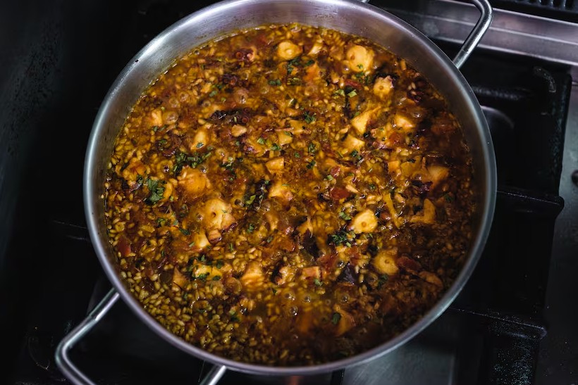 Los guisos mandan. Rotunda es la fabada asturiana —de la que prepara solo cuatro raciones al día, para los primeros que la solicitan (24 euros); aunque conviene encargarla— y sus distintas versiones con fabes: con almejas finas (33 euros), o con pulpo y langostinos (29 euros). También sorprende con una sopa de merluza y almejas finas (19 euros), que abre en el acto, o un pulpo de pedrero (de roca y tamaño pequeño) con patatinas (28 euros). Pero el plato estrella son los arroces: magníficos el de pulpo y el de almejas.