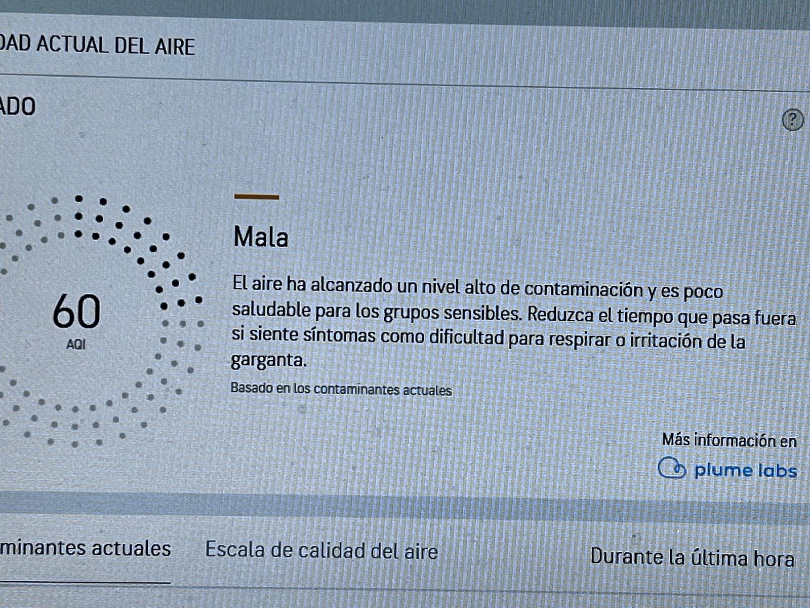La calidad del aire en Gijón el sábado 27 de diciembre del 2025, según AccuWeather es Mala, con un nivel 60 AQI, ya que el aire ha alcanzado un nivel alto de contaminación y es poco Saludable para los grupos sensibles, aconsejando reducir el tiempo que pasa fuera, si siente síntomas como dificultad para respirar o irritación de la garganta. Con escasa calidad del aire en la última hora, ya que el alto nivel 60 AQI de partículas finas PM25, pueden entrar en los pulmones y en el torrente sanguíneo y provocar graves problemas de salud.
