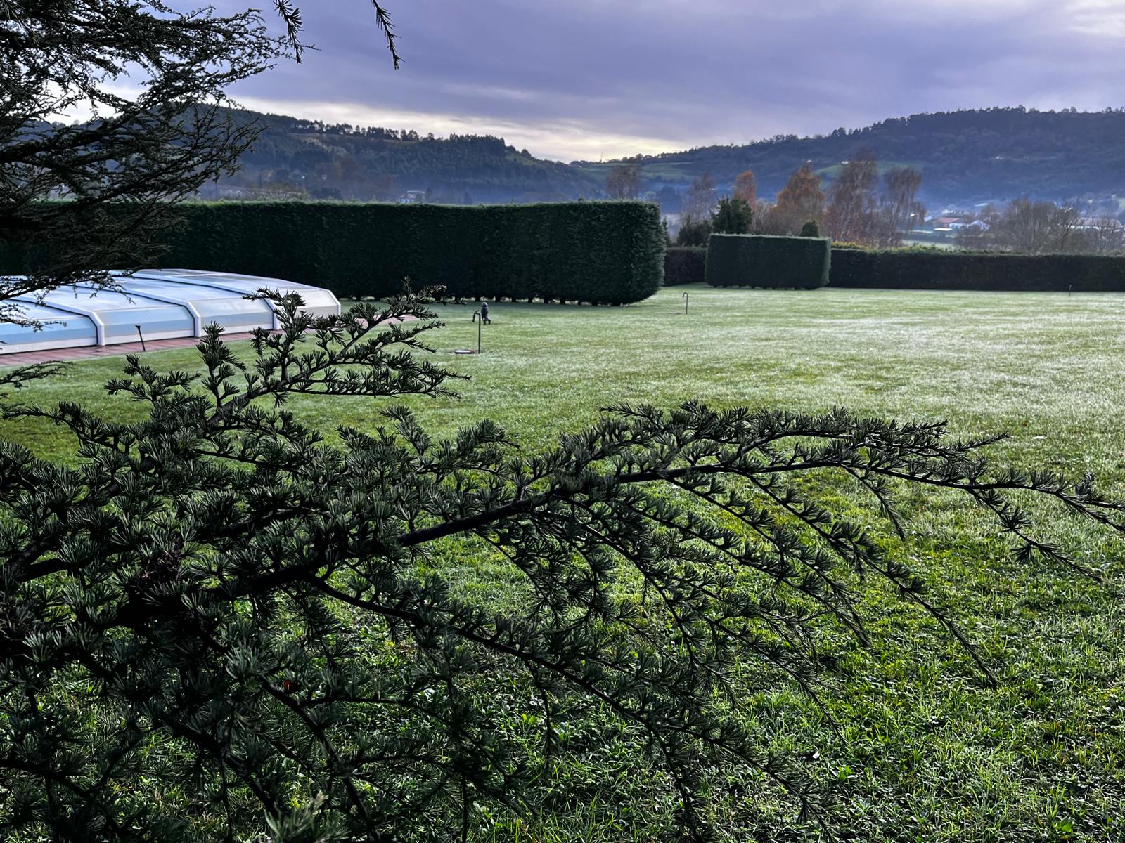 Mi pragmatismo me obliga a mostraros mi impoluta piscina exterior y para + Inri, después de los vendavales del 21 y 22 de este noviembre, se mantiene a 20 grados, que son 6 más que el precioso Mar Cantábrico, que está hoy a 14 grados.