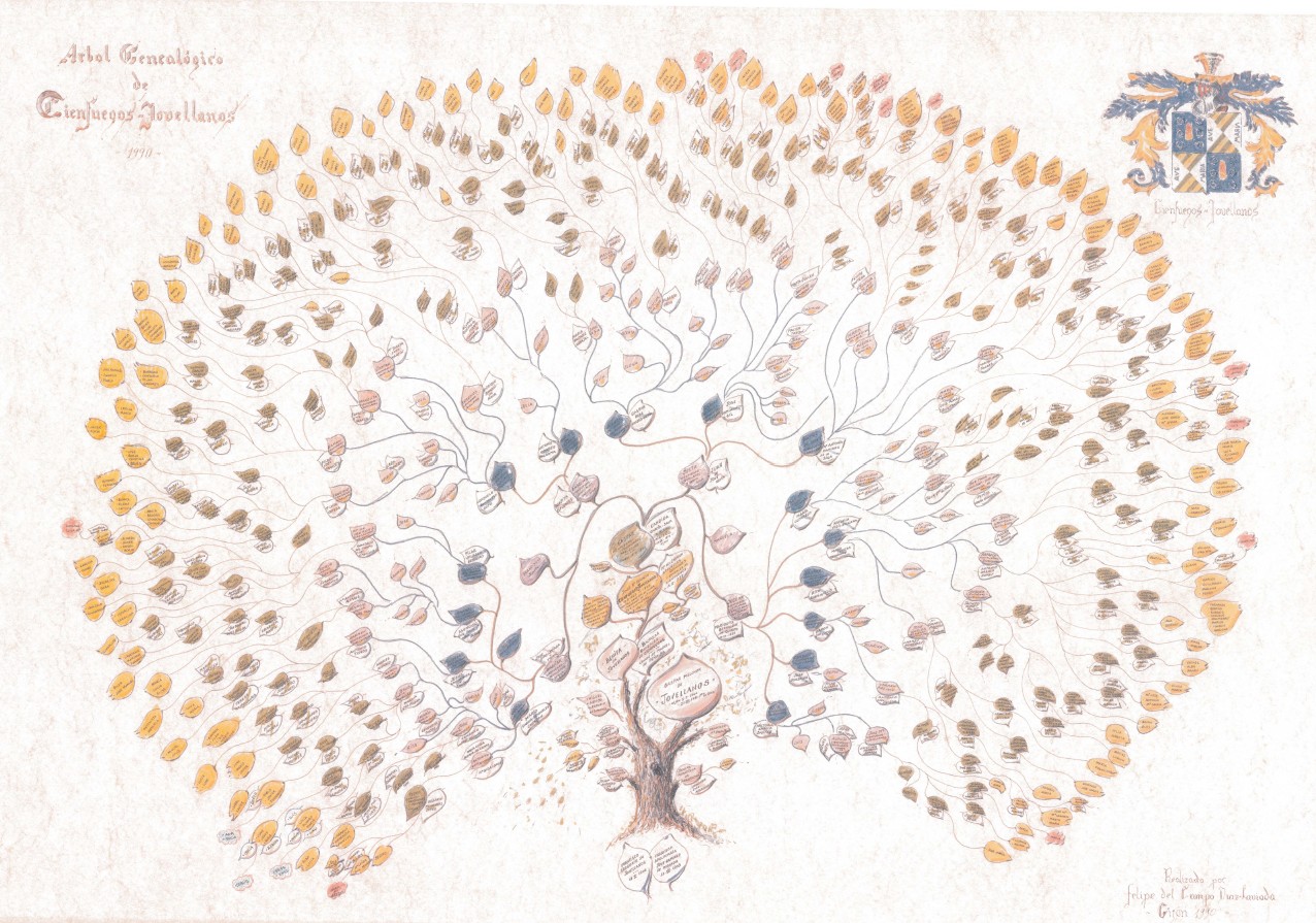 P.D. El personaje histórico, escritor, jurista y político ilustrado español, nacido en Gijón el 5 de enero de 1744, llamado Excelentísimo Sr. Don Gaspar Melchor de Jovellanos, cuyo árbol genealógico adjunto en un archivo, donde se puede comprobar como Consorte, El Tío La Vara, se ha colado en el cuadro realizado por el artista y primo de mi mujer, llamado Don Felipe del Campo.