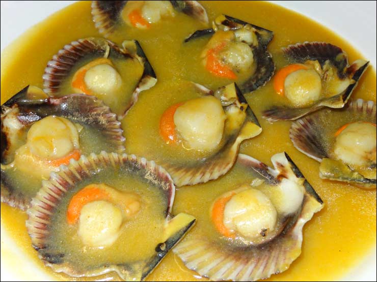 Las zamburiñas (16 €) es una de mis habituales entradas compartidas, después de una tacita calentita del oro líquido coralino que es su sopa de pescado Especial. Infinidad de famosos han probado su merluza Nalón desde que en 1964 Don Emilio Alarcos, catedratico, lingüista y secretario durante muchos años de los Premios Príncipe de Asturias, escribiera en su libro de firmas insignes lo siguiente el 02/01/98: "Han pasado 30 años desde que descubrí en el Nalón, que la merluza era comestible y un manjar exquisito". Él hizo al Nobel Don Camilo José Cela, uno de sus más acérrimos fan y forofos, que prometió (y cumplió) que cuando estuviera a menos de 300 km. de Oviedo se acercaría a degustar este plato sublime, que fue el primer hermanamiento de la sidra asturiana con la merluza. Su amiga Esmeralda fue silenciosa testigo de que Don Camilo no fue quien hizo, durante una multitudinaria comida, la boutade de decir lo de que "si la Virgen de Covadonga es pequeñina y galana, que se joda", y sabe el nombre del desafortunado que dijo esa estupidez, apoyado por los efluvios del alcohol excesivo en la amigable comilona